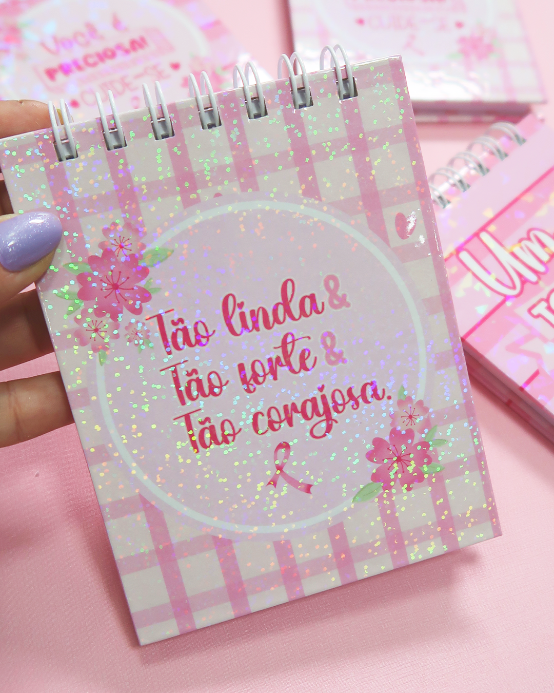 Este bloquinho especial Outubro Rosa é perfeito para mimar e conscientizar as mulheres de sua vida, sejam familiares, amigas ou clientes.